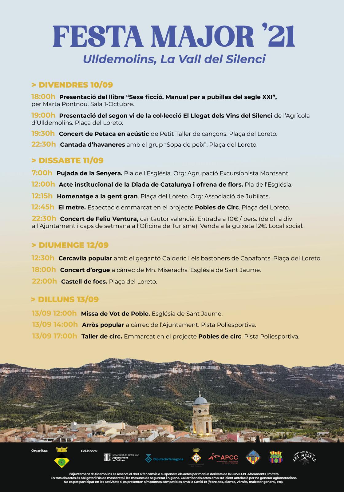 El Petit Taller de Cançons participa a la festa major d’Ulldemolins amb el seu espectacle “El So de la Lluna i la Veu de la Terra”. És un espectacle de petit format on la veu d’Àngels López, acompanyada per David Melgar al piano ens transmetran les emocions de les cançons del Petit Taller de cançons en un format acústic i molt íntim.